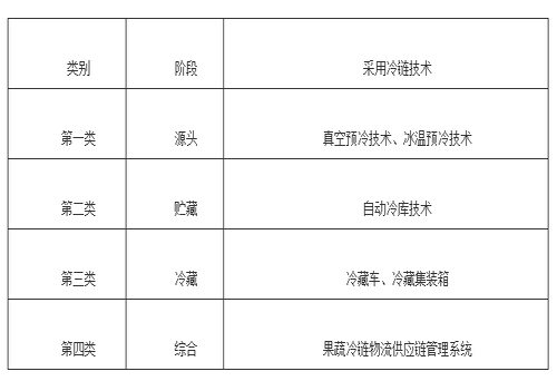 成熟冷鏈物流涵蓋從生產到銷售全過程,而整個流程是對生產、加工、儲存、銷售等過程都進行冷鏈處理,具體來看可以劃分為為四個不同的技術階段:一是源頭采用真空預冷技術和冰溫預冷技術;二是在貯藏階段采用自動冷庫技術;三是冷藏運輸采用冷藏車、鐵路冷藏車和冷藏集裝箱配套使用的物流模式;四是運用信息技術建立電子虛擬果蔬冷鏈物流供應鏈管理系統,對農產品鏈全過程進行動態監控。
